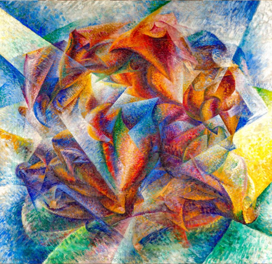 En 1913 Umberto Boccioni peint Dynamisme d’un joueur de football. J’ai choisi ce tableau pour illustrer cette courte période, la plus brillante de la peinture futuriste. Cette avant-garde permet enfin à l’Italie de jouer un rôle majeur dans l’art moderne.