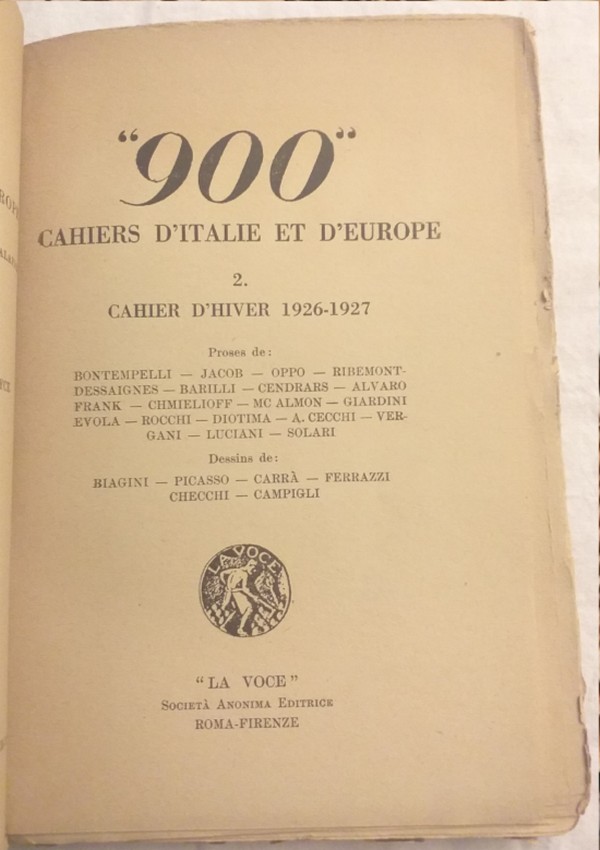 « 900 » Cahiers D’Italie et D’Europe 2. Cahiers d’hiver 1926-1927