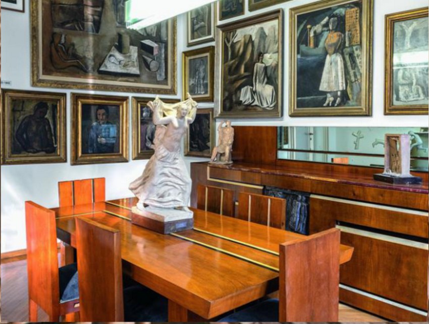 Le peintre Mario Sironi conçoit lui aussi des meubles, qui sont aujourd’hui exposés dans la Casa Boschi di Stefano, construite entre 1929 et 1931. Dans les meubles du style Novecento qui se constitue, la massivité des contours est allégée par les contrastes entre bois clairs et foncés. Ces meubles trouvent toute leur place dans immeubles que construisent les architectes proches du Novecento, ce qui me fournit une excellente transition.