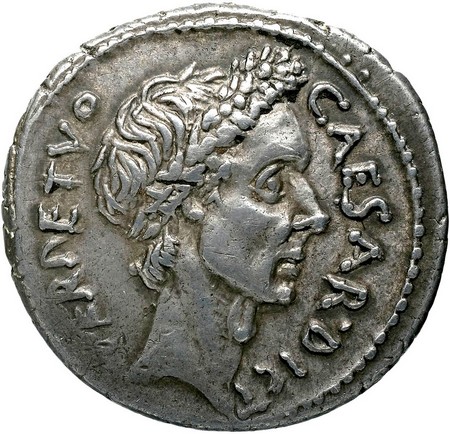 En 44 avant Jésus-Christ, César fut le premier homme politique romain à voir son visage de son vivant gravé sur une monnaie. La frappe de la monnaie relève de la procédure d’empreinte et elle garantit le pouvoir symbolique de l’unique portrait reproduit indéfiniment en tant qu’existe la matrice. Cette monnaie s’est changée à Rome jusqu’aux provinces syriennes, dans tout l’empire Romain.