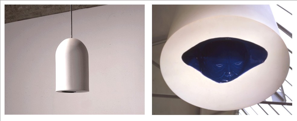 L’année suivante, en 1993, un autre autoportrait apparaît dans une urne suspendue. Il a été réalisé avec la manufacture nationale de Sèvres. Porcelaine, biscuits émail bleu, acier inox.
