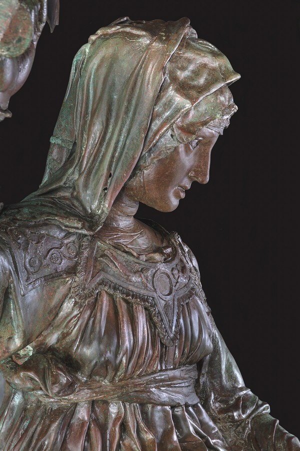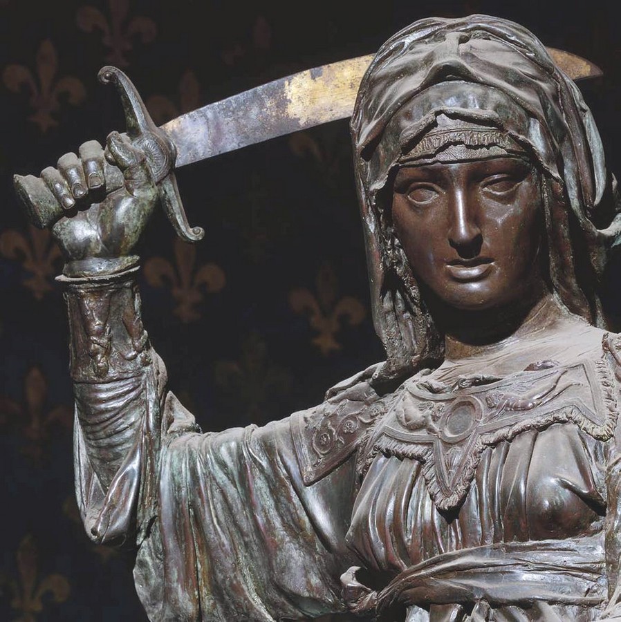Les jambes d’Holopherme ont été moulées sur nature. Le voile de Judith est le résultat d’une empreinte. L’artiste a jeté un voile réel, imbibé de cire chaude sur la tête d’un mannequin en bois et une fois la cire durcie, il a fait fondre directement l’objet et l’a soudé au reste de la sculpture.