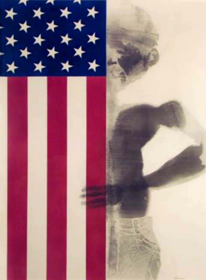 En 1968, vers la fin du mouvement des droits civiques et le début du mouvement des Black Power, il a ajouté par sérigraphie le drapeau américain pour envelopper la figure centrale associant le symbole patriotique à son corps d’homme noir pour souligner les tensions raciales qui agitent les États Unis.