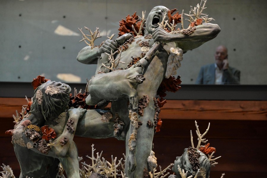 De même, lorsque Damien Hirst a conçu les sculptures de l’épave incroyable, censée avoir séjourné au dans l’eau pendant des siècles, tous les coraux, les lichens, les mousses, les éponges ont été réalisés à la cire perdue avant d’apparaître comme faisant partie des bronzes peints.