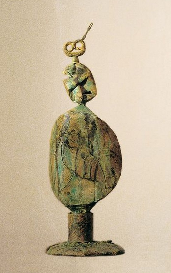 Le moulage permet la duplication, la conservation des formes et la circulation des œuvres. C’est aussi ce procédé de la cire perdue qui a permis à Juan Miro de réaliser en bronze des sculptures d’assemblage composées de choses fragiles et éphémères. Pour le pèlerin par exemple, une coquille Saint-Jacques sur du papier froissé