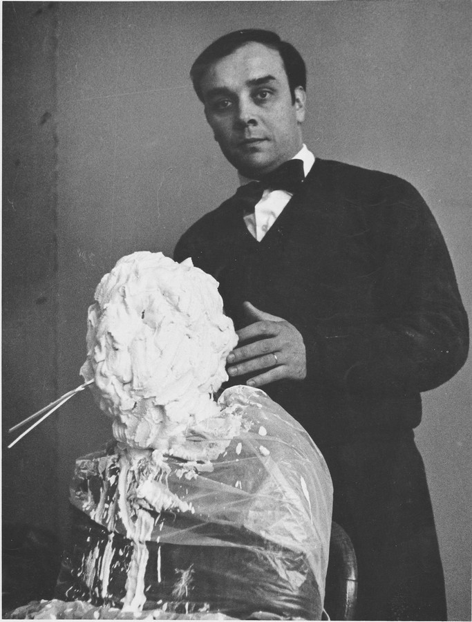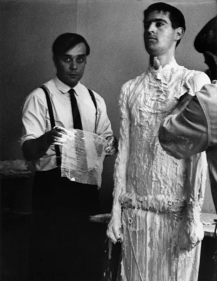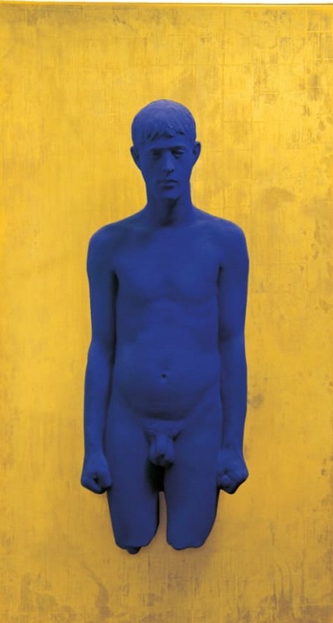 2 ans après, en 1962, Klein a entrepris de mouler les corps de ses amis. Des formes qu’il a ensuite peintes en bleu IKB et fixées sur des panneaux recouverts de feuilles d’or. Mise en scène qui donne un caractère d’icône à ses empreintes. Il fait :