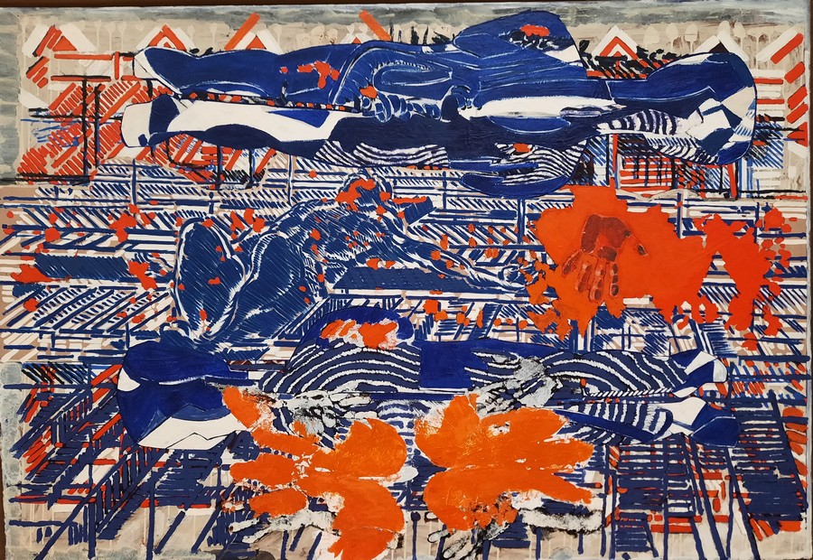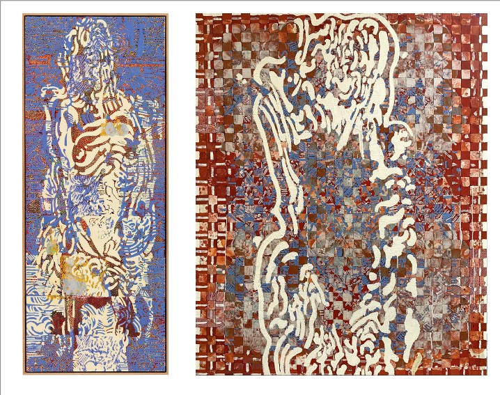 Dans la série Recorda (2024-2025) — un mot catalan signifiant « se souvenir » — Rouan revient aux tressages all-over de ses débuts. Il y intègre des fragments d’empreintes figuratives, créant ainsi un brouillage entre les deux grandes époques de sa carrière.