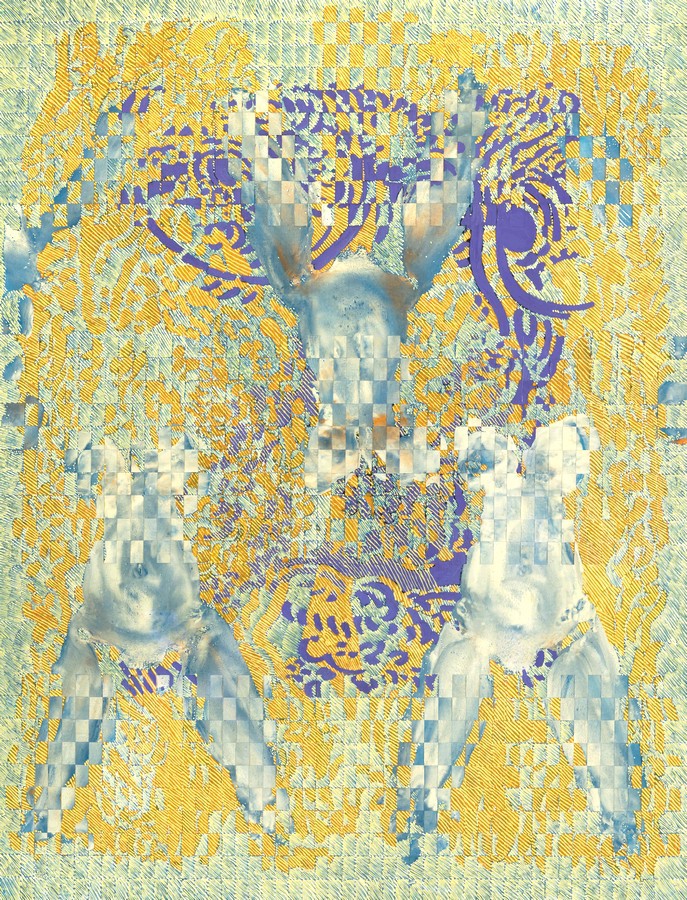 On retrouve bien dans l’usage que Rouan fait des empreintes au fil de ses expérimentations les deux composantes inhérentes à l’histoire de ce procédé : Eros et Thanatos. Parce qu’il s’agit d’une technique liée au contact avec le vivant, elle induit l’idée de deuil et de perte, tout en ouvrant un champ de désir sensuel.