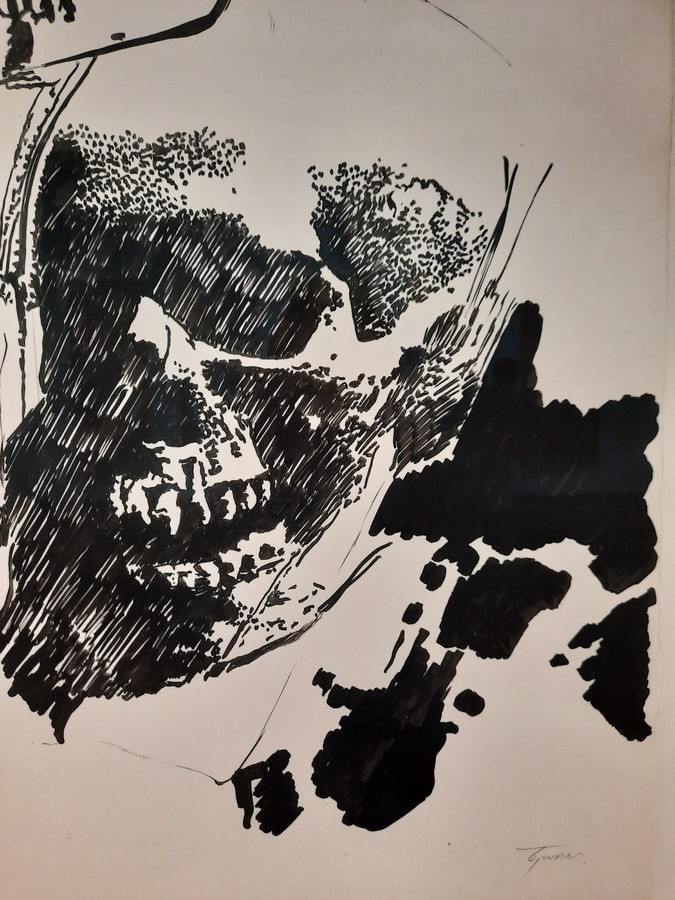 Parallèlement, inspiré par les crânes de Cézanne, il réalise d’abord des encres de Chine sur ce thème, puis une série de peintures intitulée Bourrage de crâne.
