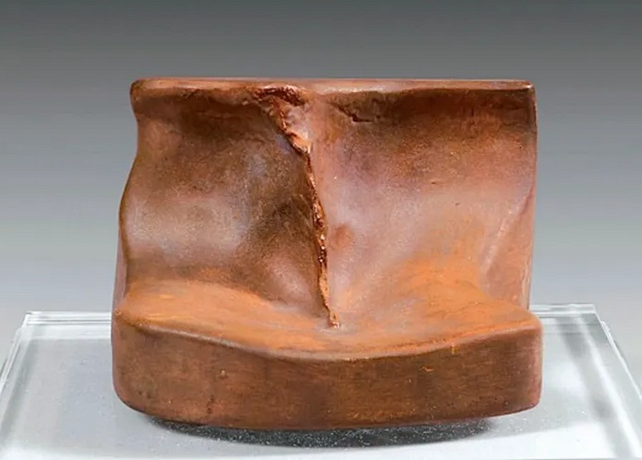Le vase est devenu une jarre anthropomorphe dont l’ouverture est la bouche, l’artiste a ensuite pris l’empreinte de sa propre bouche avec de l’argile.
